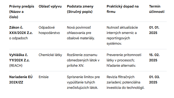 - Naša služba nahrádza potrebu alokácie interných právnych kapacít na pravidelný monitoring legislatívnych zmien.